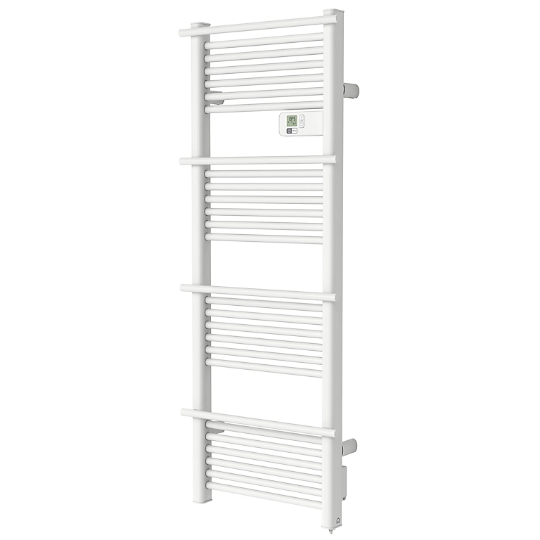 Ce sèche-serviettes électrique à tubes ronds Solna 500W est parfait pour les grandes salle de bains familiales de plus de 7m². Sa conception avec ses tubes déportés permet de suspendre les serviettes sans couvrir le reste du sèche-serviettes, ce qui permet à la chaleur de circuler plus librement dans la pièce. Il est équipé d’un thermostat programmable pour ajuster les périodes de chauffage et vous permettre de faire des économies d’énergie.